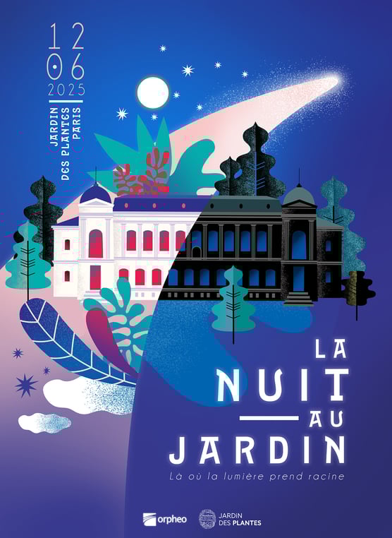 Orphéo propose un spectacle lumineux qui se déroulera tout l'été au jardin des plantes, à Paris. L'affiche devait refléter l'univers magique de l'évènement.